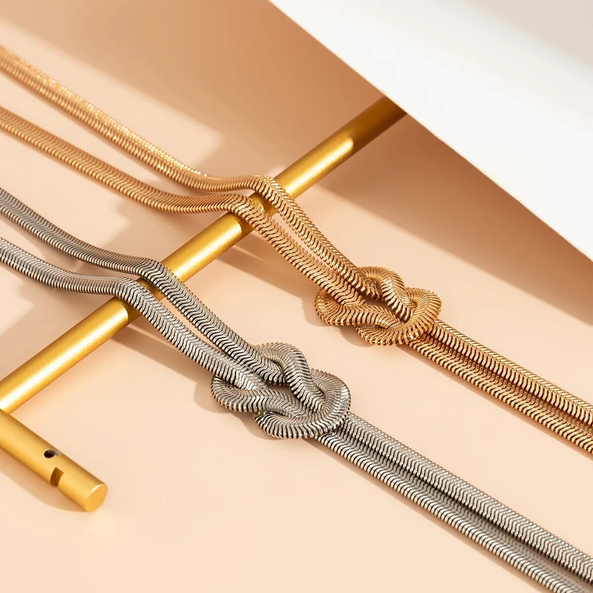 The Gold Plated Traced Knot Necklace is a stunning piece of jewellery that combines an elegant design with the sophisticated shine of gold. This necklace is a unique interpretation of the classic knot, which symbolises union and eternity.