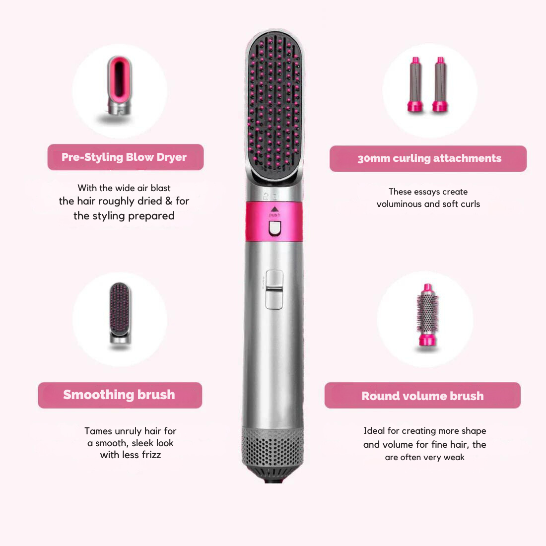The 5 different attachments ensure maximum flexibility and a feeling like you've just been to the hairdresser.