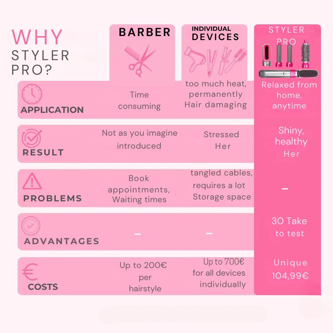 The StylerPro is the solution for perfectly styled hair in just a few minutes.
