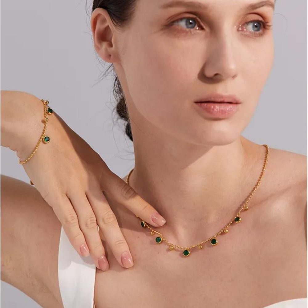 Explore the Cubic Zirconia Necklace and Bracelet Set, an enchanting combination that combines elegance and sparkle. The necklace and bracelet feature sparkling zirconias, providing a subtle touch of glamour for any occasion. This collection is the perfect choice to elevate your style with sophistication and finesse.
