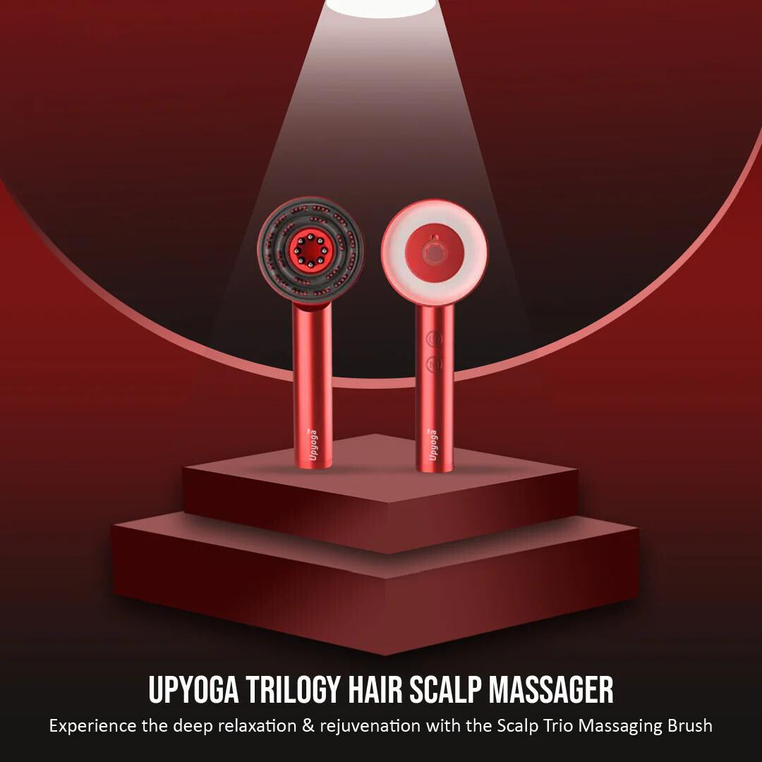 Experience ultimate relaxation with the Scalp Trio Massager - A Scalp Massaging Brush and oil applicator that will leave you feeling blissful and rejuvenated!