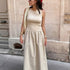 Get ready to stand out with this stunning long dress, which combines the elegance of pleats with the relaxed look of patchwork. Perfect for expressing your unique style, this model is a feminine and bohemian fashion statement.