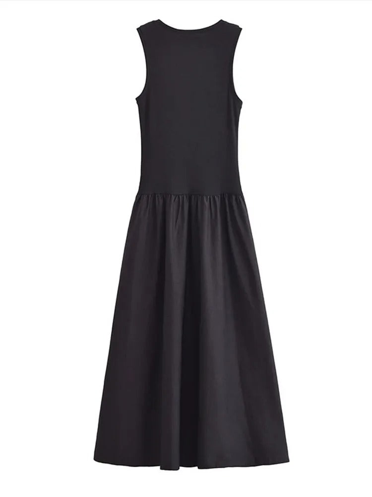 Long pleated dress with loose patchwork