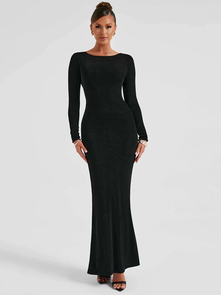 Introducing our Serenity long-sleeved backless maxi dress, where grace meets allure in a harmonious blend of style and sophistication.