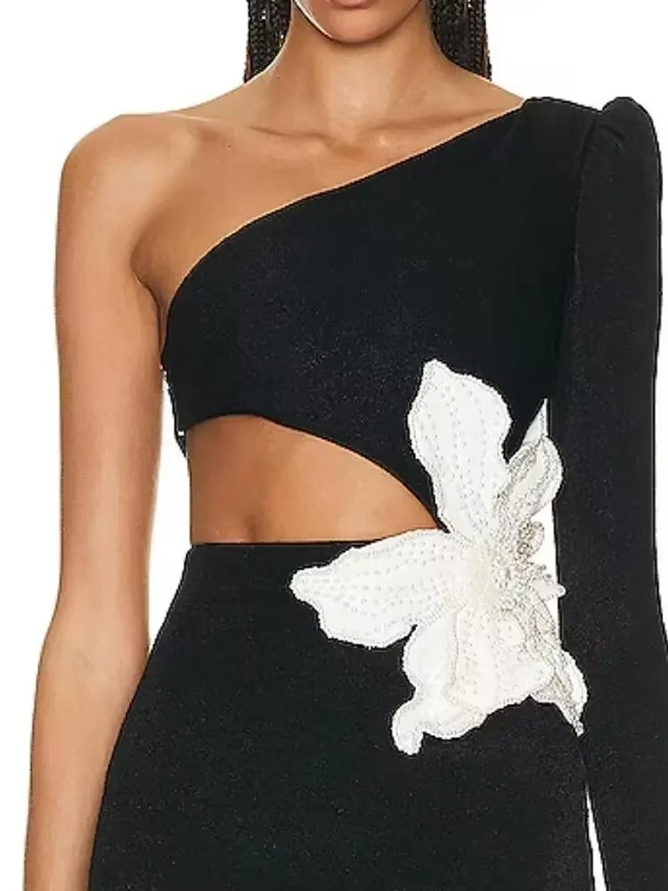 Hollow Out Flower Detail: Chic hollow-out flower pattern enhances the dress's allure, perfect for evening parties.