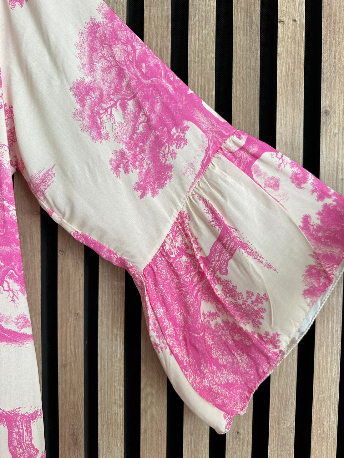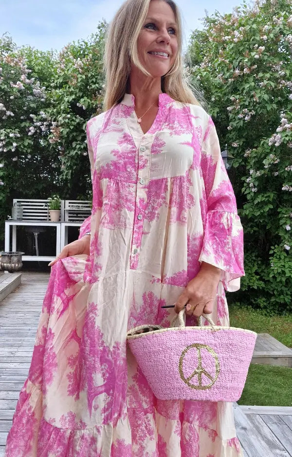 Made from a soft, lightweight fabric, the dress feels delicate and comfortable. The soft pink color, with a brassy touch, creates a modern and timeless look.
