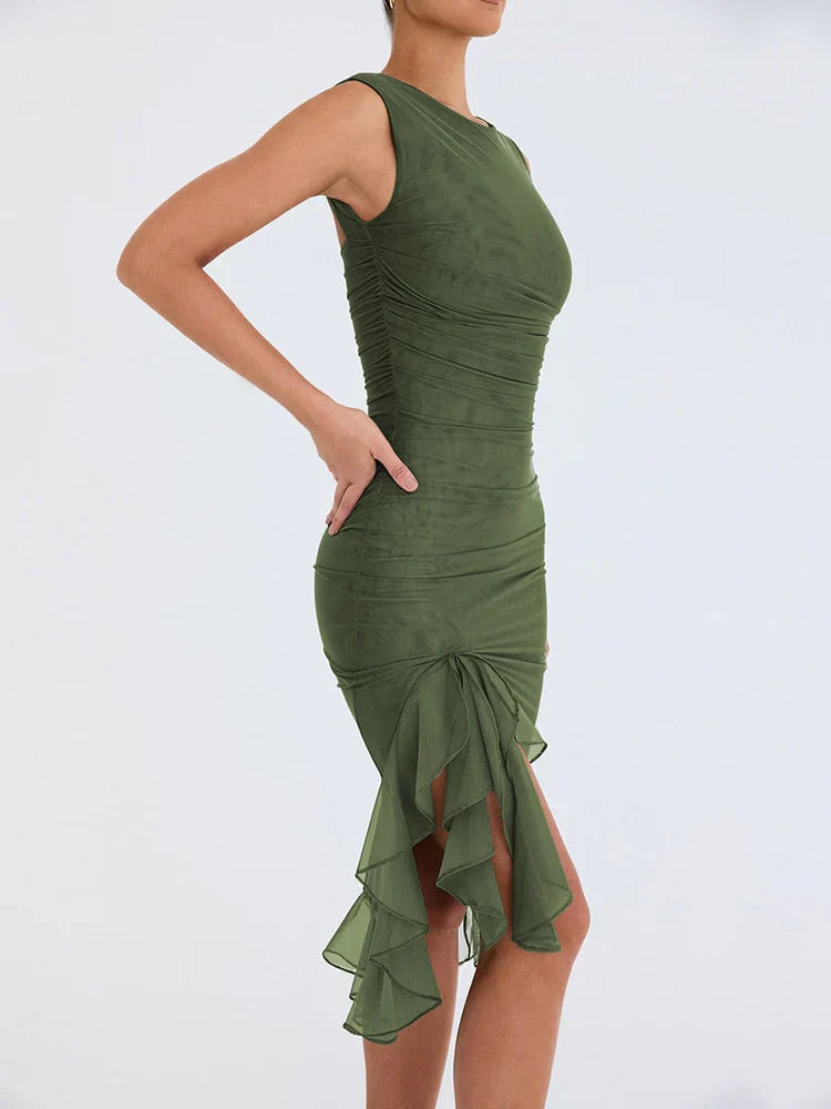 Elevate your style with this ruffled midi dress - a perfect blend of charm and sophistication for any occasion. Add it to your closet and step out with confidence and grace.