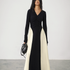 V-Neck Panel Pleated Long Dress