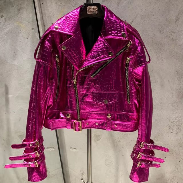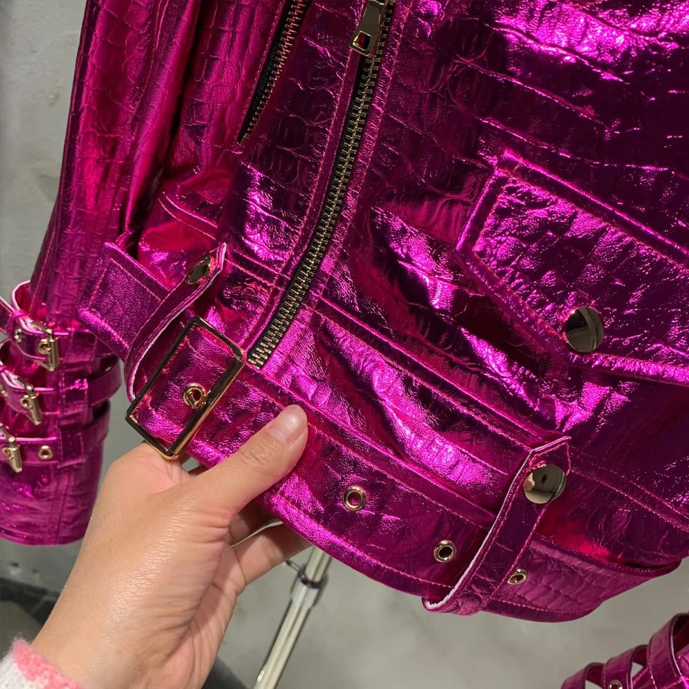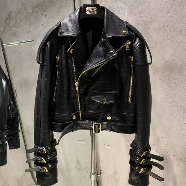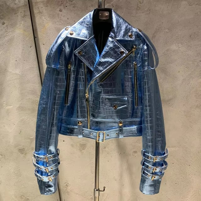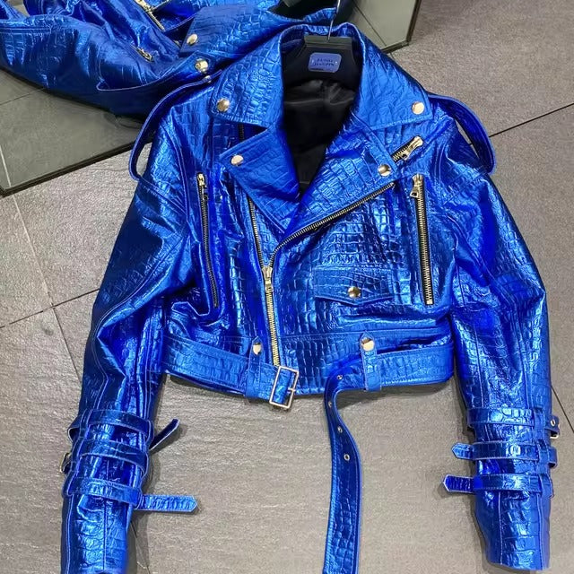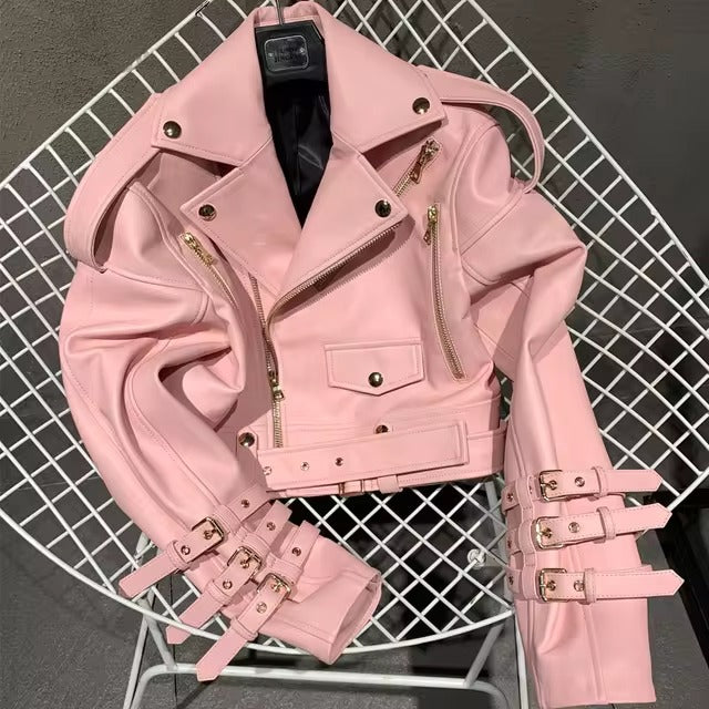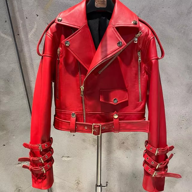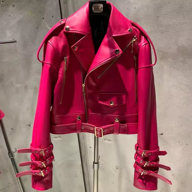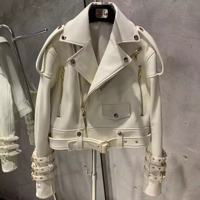 Made from high quality leather, the jacket offers durability and comfort, ideal for wearing on a variety of occasions. Its versatile cut allows it to be combined with jeans, skirts or dresses, making it perfect for outings, social events or a cool casual look.