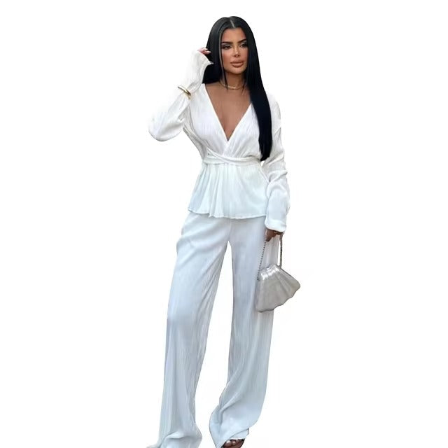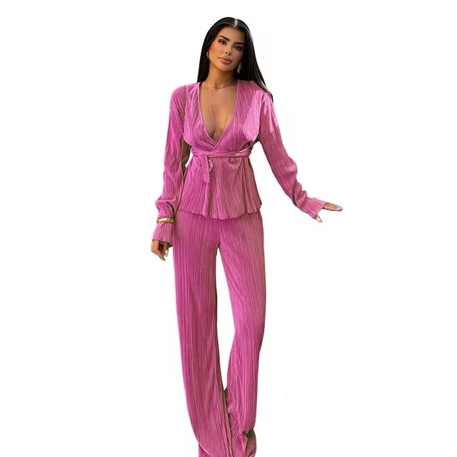 Transform your style with the Women's Chic Set, the ideal choice for those who want a sophisticated and contemporary look. This set consists of a blouse and pants, designed to offer comfort and elegance for any occasion.