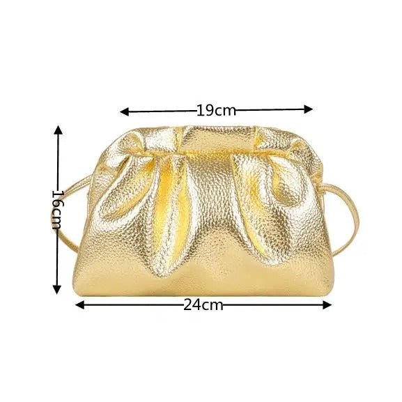 Elevate your style with the Cloud Gold Bag, a piece that radiates elegance and modernity. Perfect for special occasions or for adding a touch of glamour to your everyday life, this bag is an essential accessory.