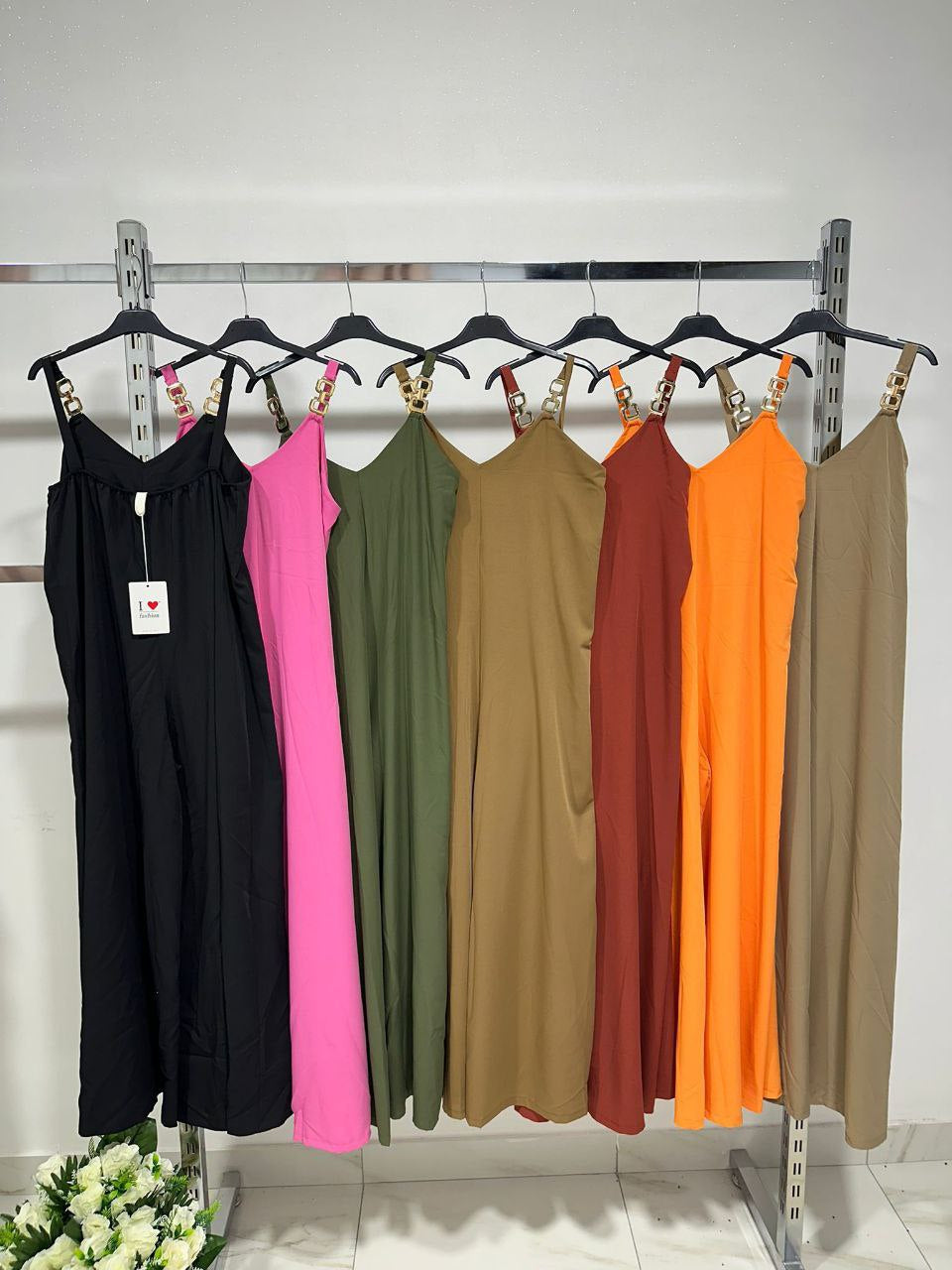 The Women's Long Elegant Jumpsuit with shoulder straps and super light fabric for coolness, composed of 95% polyester and 5% high quality elastic.