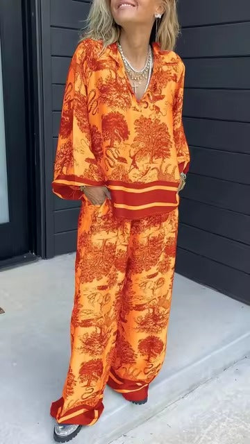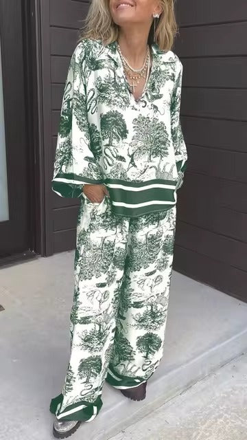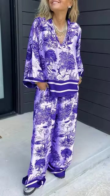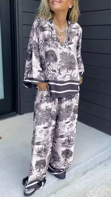 Discover comfort and elegance with the Women's Two Piece Casual Set Satin. This set consists of a blouse and pants, made from high quality material, providing a soft touch and an impeccable fit.